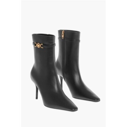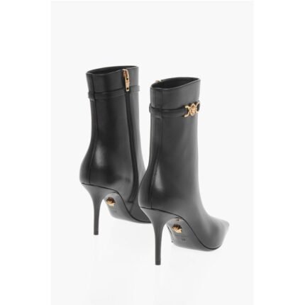 Versace Leather Booties with Logoed Strap and Stiletto Heel 9cm