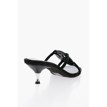 Description: Details: WOMEN’S DAY SHINY Spring-Summer Black Leather sole Peep toe Rhinestone Logo Suede P614272 Heel: 5 5cm – Converted