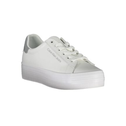 Elevate your sneaker game with the latest from Calvin Klein. These pristine white kicks boast contrasting details that exude modern