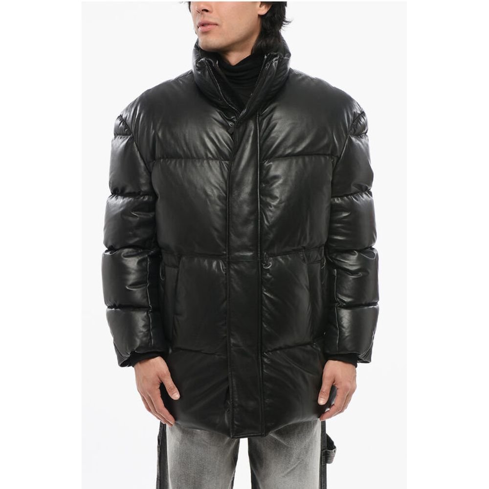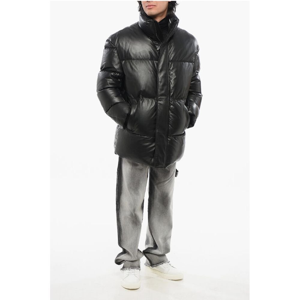 Armani EMPORIO Leather Down Jacket with Hidden Closure