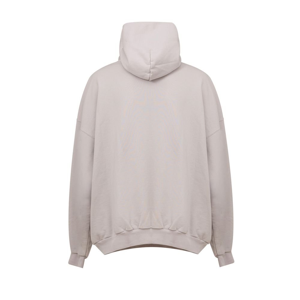 Unisex Oversized Hoodie ‘Beverly Hills’ Balenciaga. In off white cotton, front pocket with side inserts, contrasting logo embroidery on the side, oversized fit.