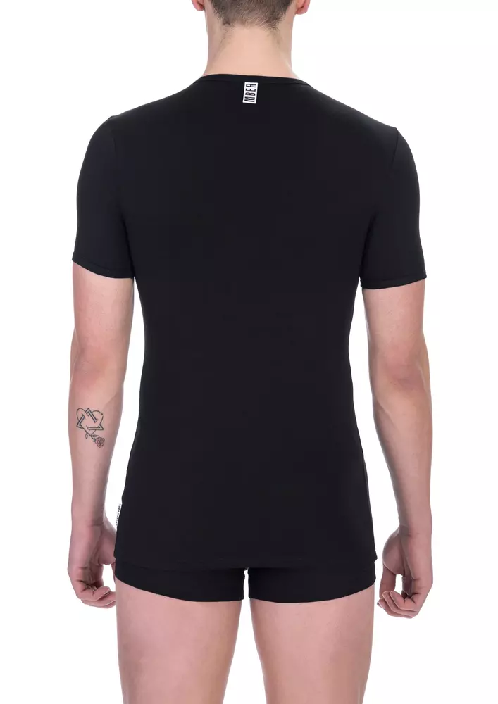 Bikkembergs Black Cotton Men V-Neck T-Shirt