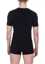 Elevate your casualwear with the sleek sophistication of a Bikkembergs V-neck T-shirt. Crafted from a blend that assures both comfort and a flattering fit, this premium black tee is a testament to timeless style and quality craftsmanship. Perfect for the modern man who values a combination of luxury and utility in his wardrobe essentials.