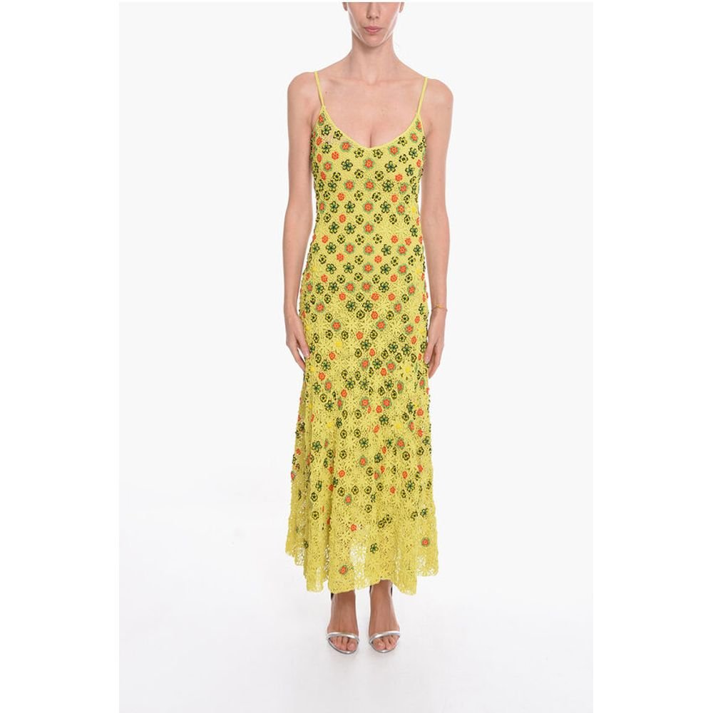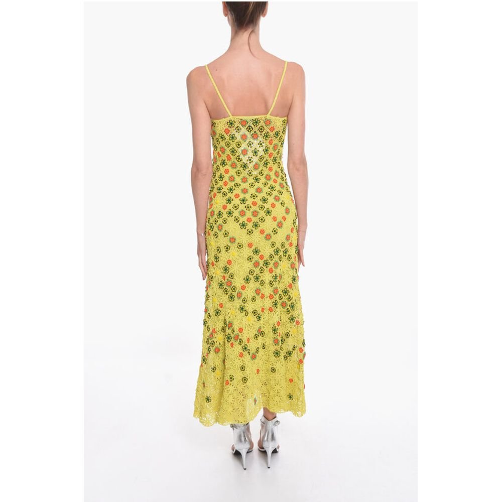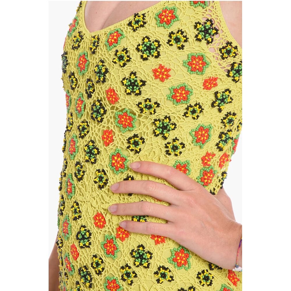 Bottega Veneta Viscose-crochet Flared Dress with Beaded Floral Motif
