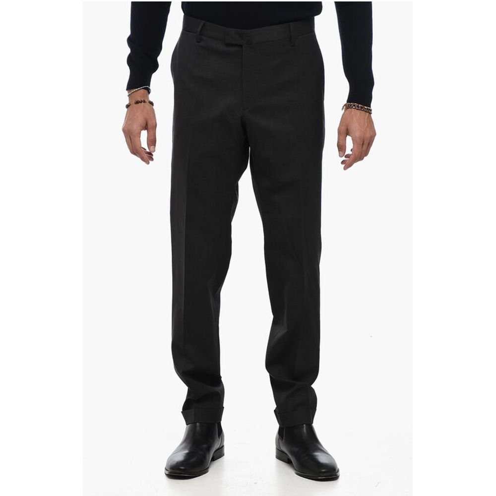 Briglia 1949 Wool Blend Slim Fit Pants with Cuffed Hem