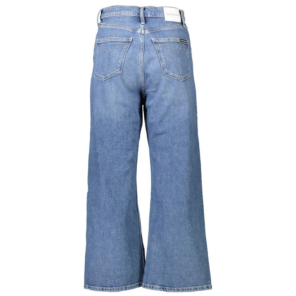 Experience the perfect fusion of classic design and modern flair with these Calvin Klein jeans. Exquisitely crafted from a blend of cotton and a touch of elastane for that irresistible comfort stretch, they boast a chic high waist and a flowing wide leg silhouette, making a bold statement in your denim collection. Accented with a functional four-pocket design, crisp button and zip closure, and proudly adorned with the iconic logo, these jeans radiate sophistication with an edge of rebellion.