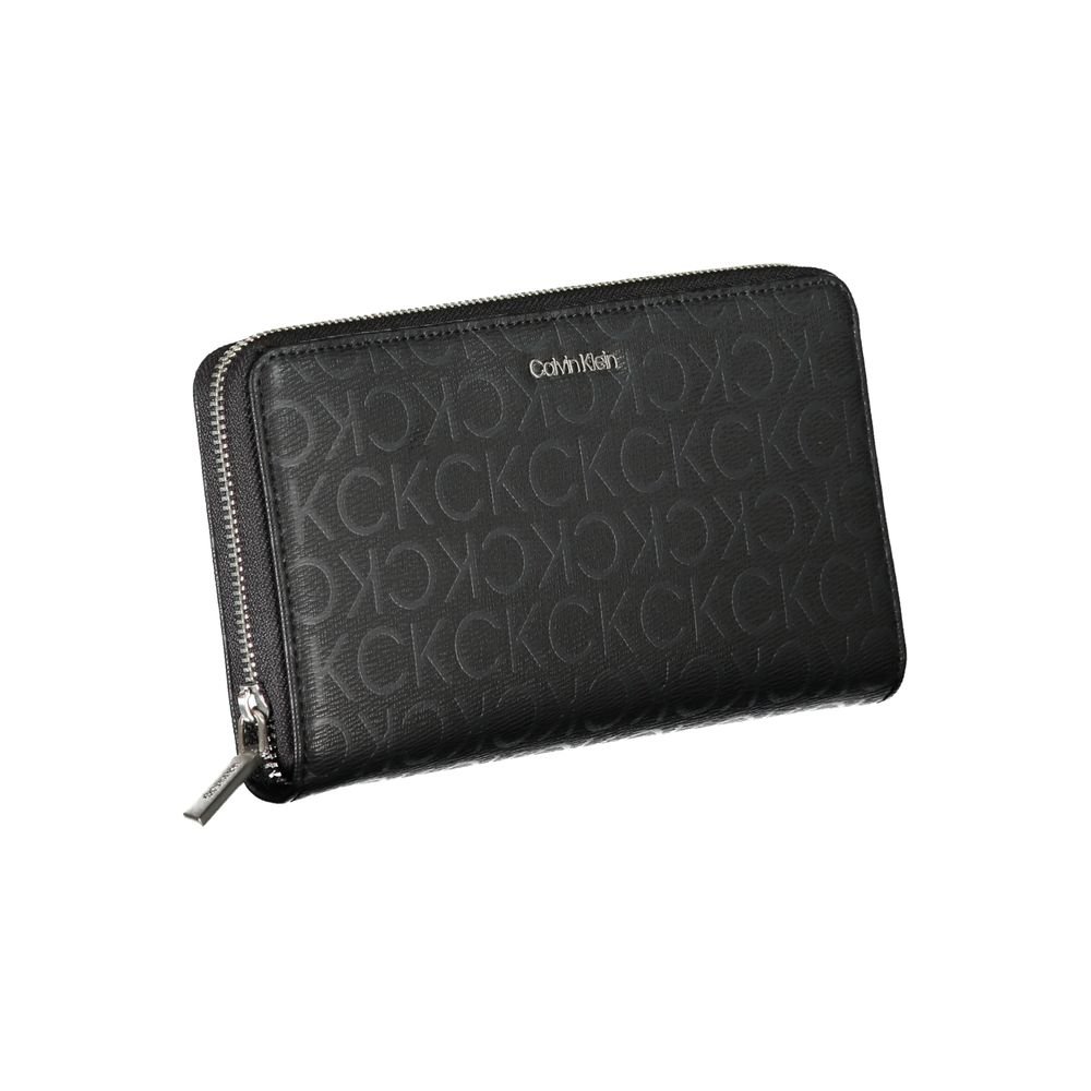 Immerse in sophistication with this sleek wallet from Calvin Klein, crafted for the modern individual. Staying organized is effortless with three well-designed compartments, complemented by a handy coin purse and dedicated spaces fitting your cards. The wallet comes with RFID blocking technology for your peace of mind, ensuring personal data protection. Aesthetically pleasing, this accessory boasts contrast details and the iconic logo, all while supporting sustainability with its recycled polyester construction.