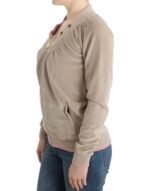 Cavalli Beige Zip Cardigan with Gold Tone Accents