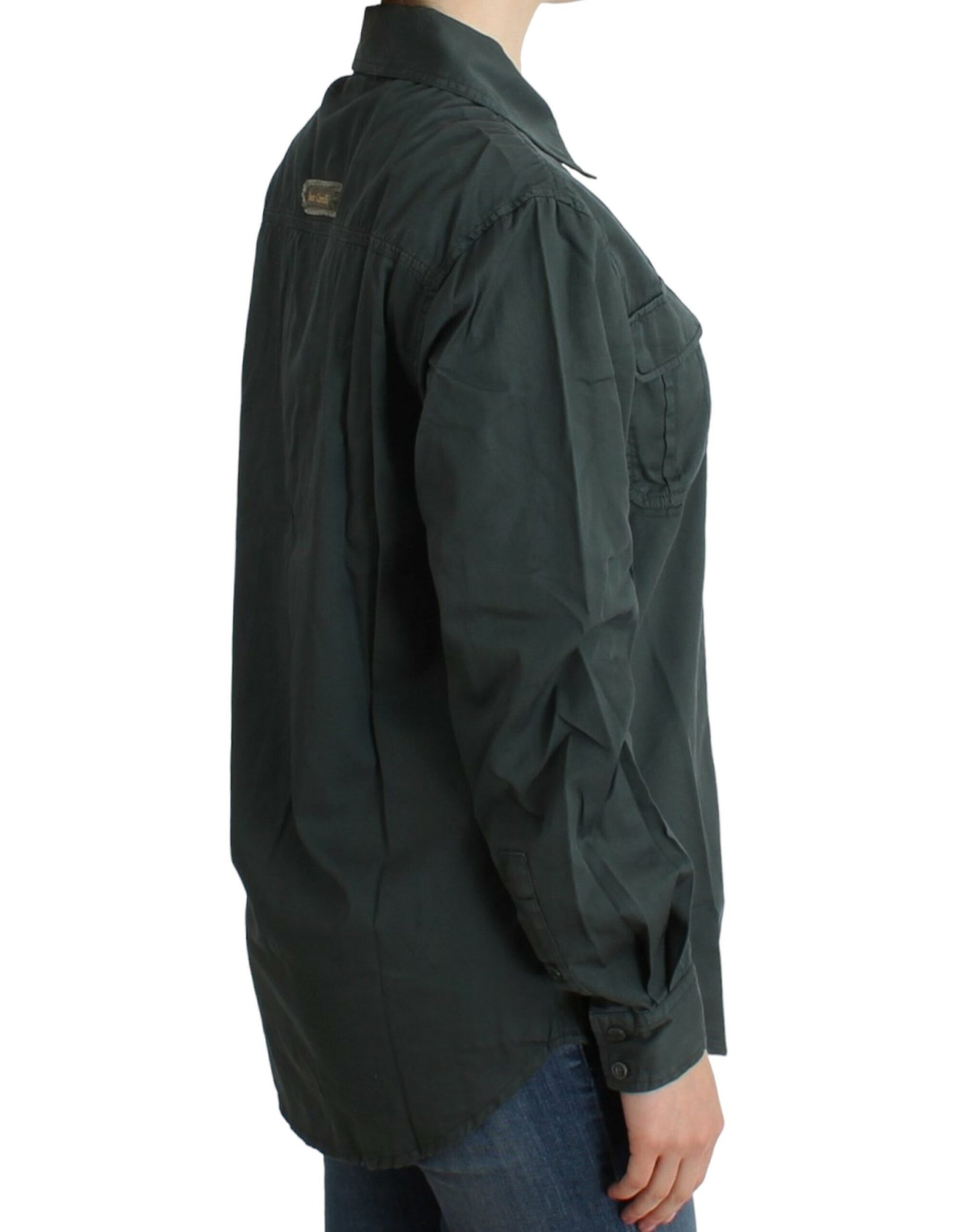 Cavalli Elegant Gray Cotton Button Down Shirt