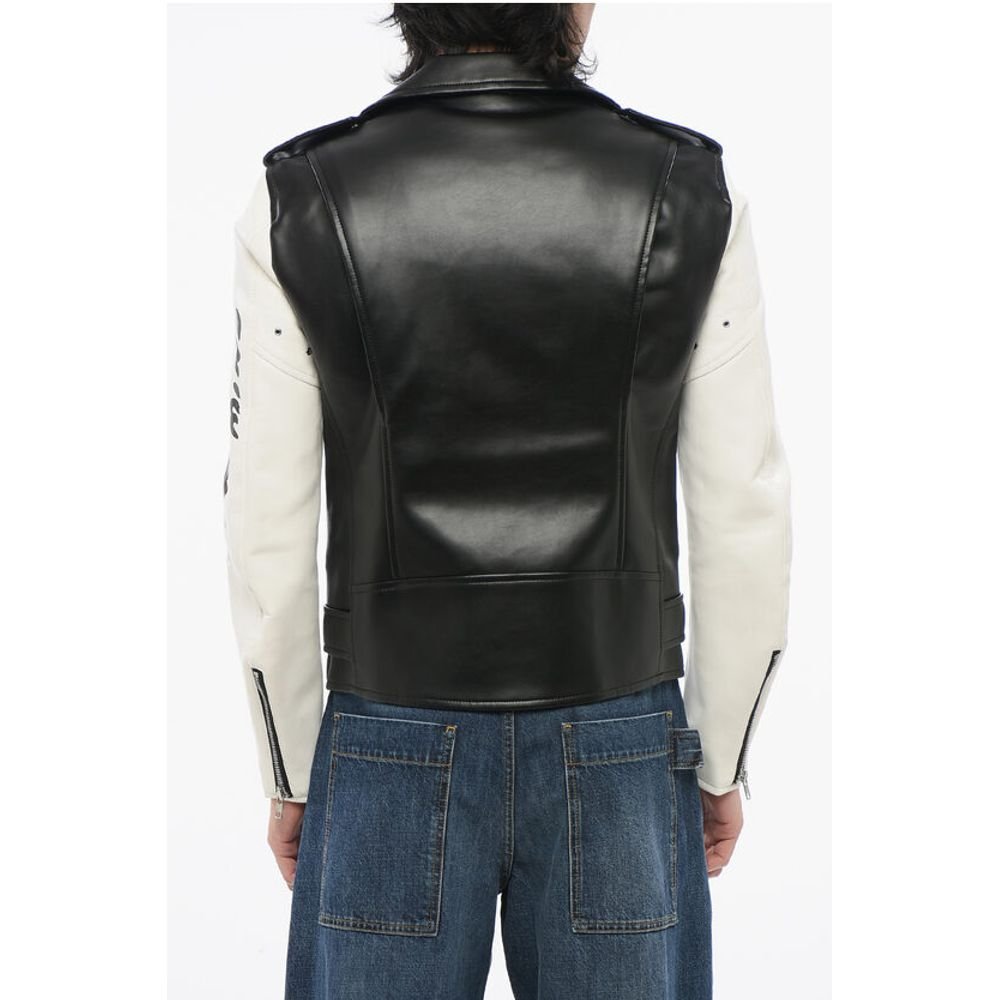 Comme Des Garçons BLACK Two-Tone Eco-Leather Biker Jacket with Prints