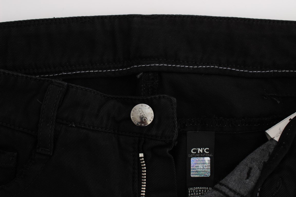 Costume National Chic Black Slim Fit Zippered Cotton Jeans