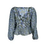 PATTERN BLOUSE, LONG SLEEVES, V-NECK, 3 BUTTONS, ELASTIC WAIST, LOGO
