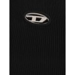 M-Vera-Ls Long Sleeve Top by Diesel, cropped pattern, all-over ribbed design, boat neck, cut-out detail with iconic three-dimensional brand logo plaque, monochrome pattern, slim fit.