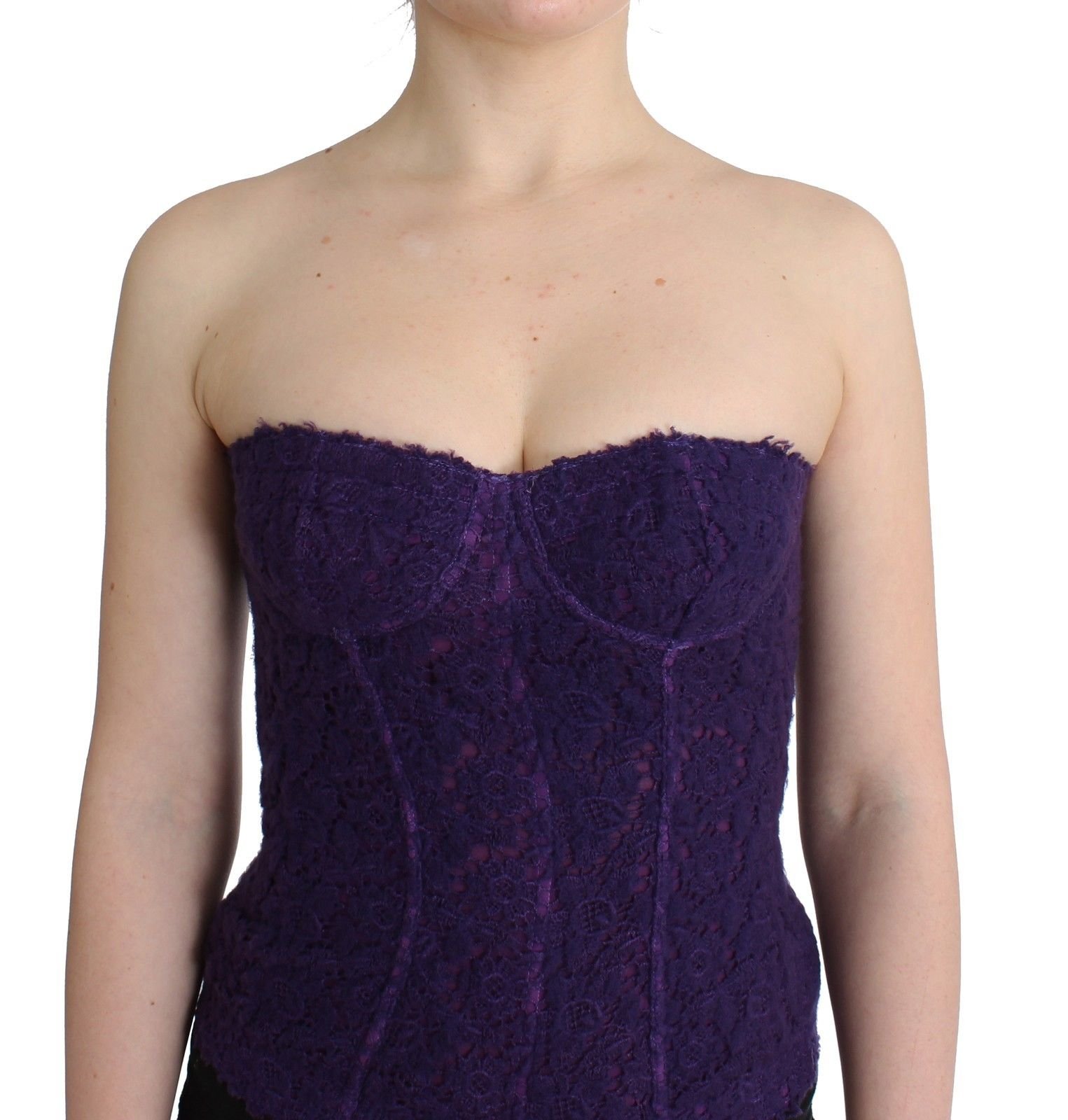 Ermanno Scervino Purple Lace Silk Blend Bustier Corset