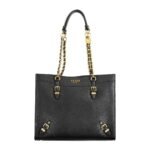 Make a bold statement with this Guess Jeans classic handbag, the epitome of chic sophistication. Perfectly sized to carry all your essentials, it features a sleek black hue with contrasting details that add an edgy touch to its elegance. Dual chain shoulder handles provide versatile carrying options, while the zip closure secures your belongings. Stay organized on the go with two external pockets for quick access items, an internal pocket, and dedicated spaces for documents. It’s not just an accessory; it’s a reflection of style and functionality.