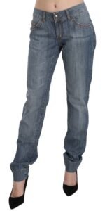Indulge in the epitome of haute couture with these beautifully crafted Just Cavalli blue washed denim jeans. Designed to elevate your wardrobe, these low waist slim fit pants are perfect for creating an effortlessly chic look. Made in Italy and graced with the distinctive Just Cavalli logo details, these jeans embody sophistication and style.