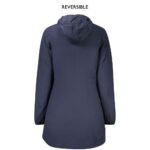 LONG JACKET WITH LONG SLEEVES AND HOOD, REVERSIBLE BLUE/BEIGE, PADDED, 2 EXTERNAL POCKETS, 2 INTERNAL POCKETS, CONTRASTING DETAILS, ZIP, APPLICATION, LOGO