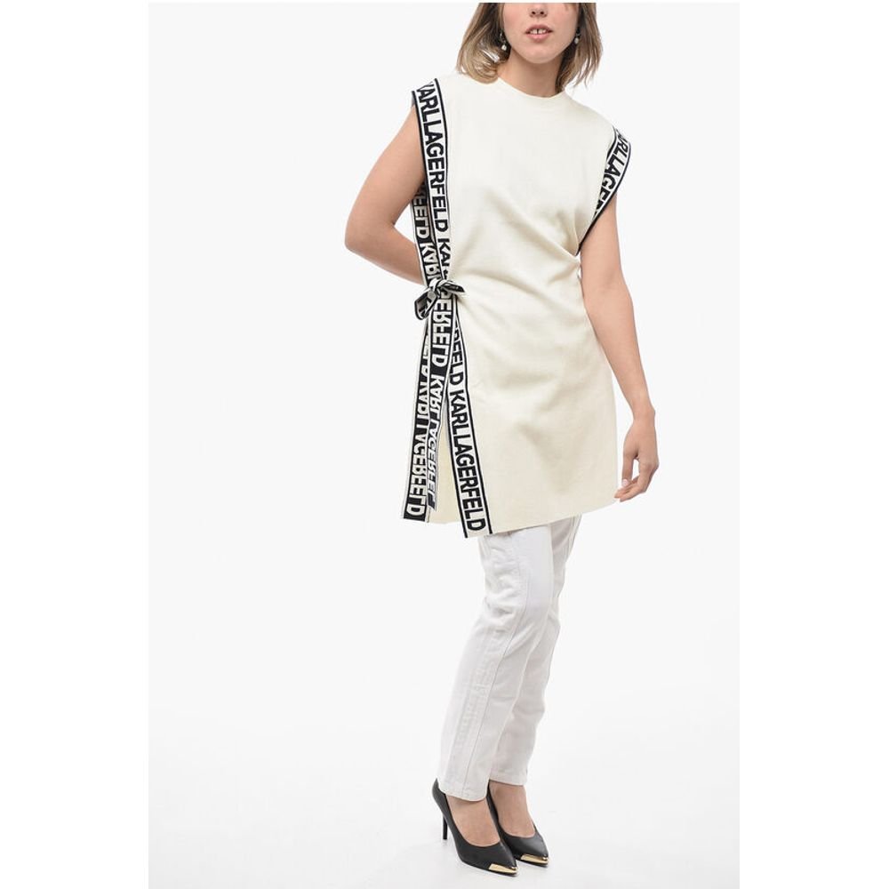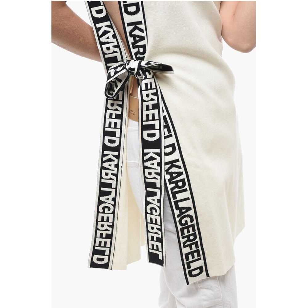 Karl Lagerfeld Knitted Crew-neck Tunic Dress with Logoed Belt