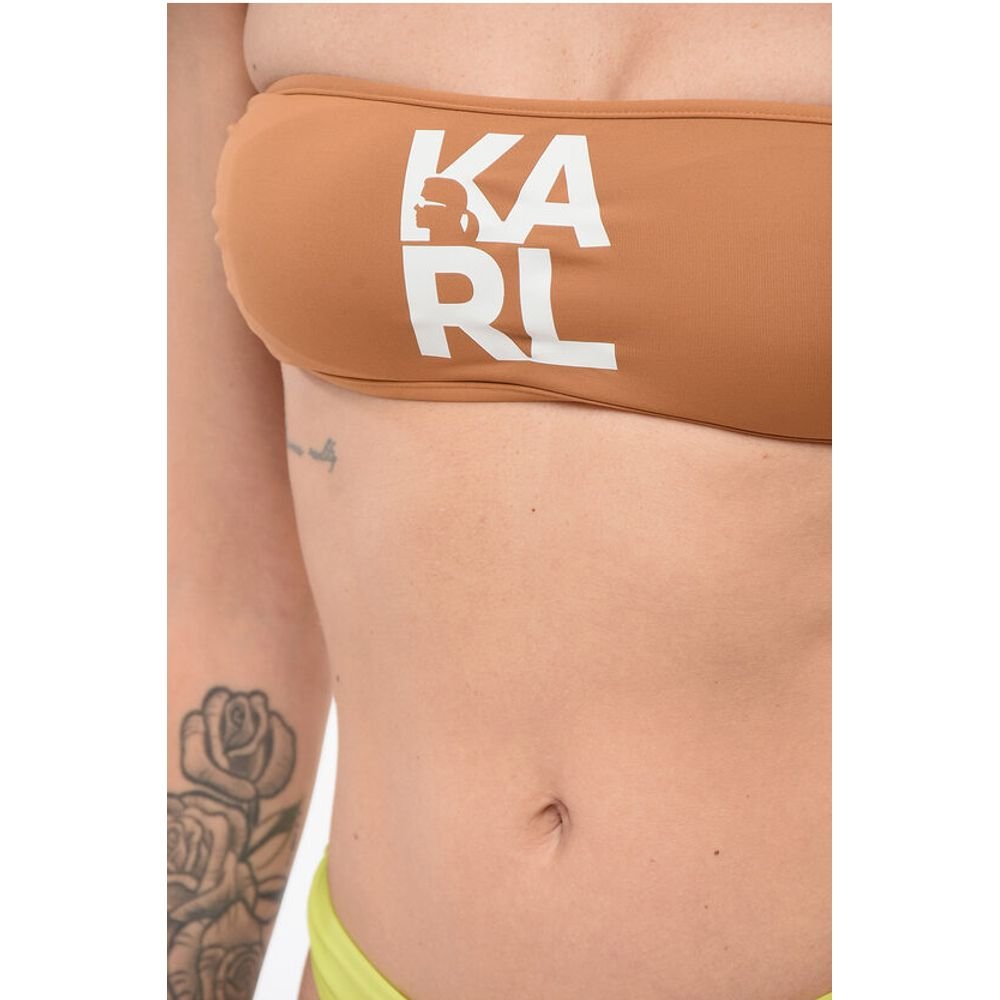 Karl Lagerfeld Solid Color Bandeau Bikini Top with Printed Contrasting Logo