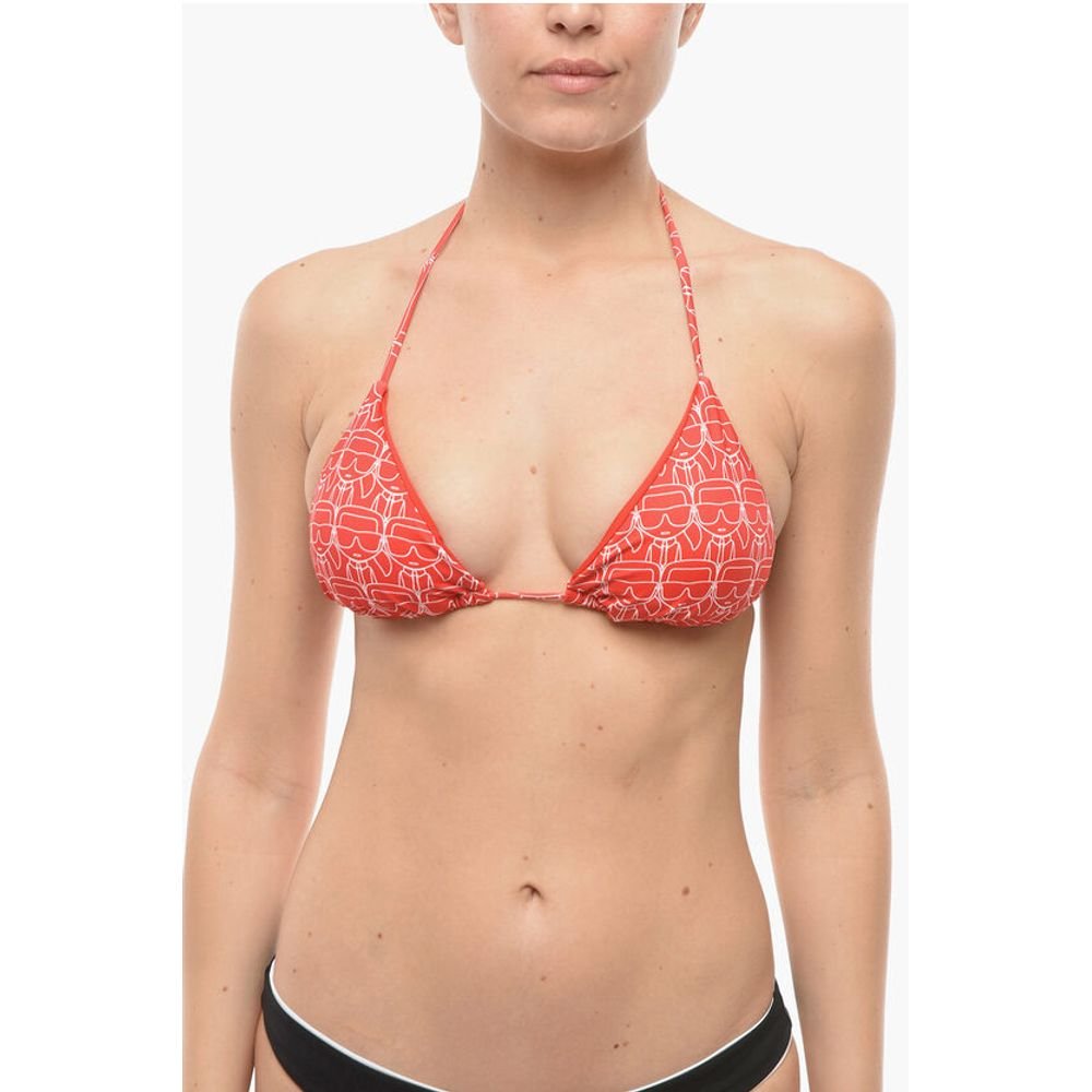 Karl Lagerfeld Triangle Bikini Top with All-Over Iconic Print