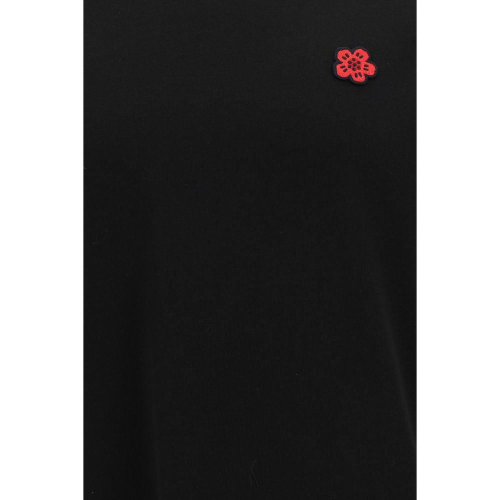 Cotton Gots Boke T-Shirt by Kenzo, ribbed crew neck, iconic brand logo embroidered in contrasting color on front, monochrome pattern, regular fit.