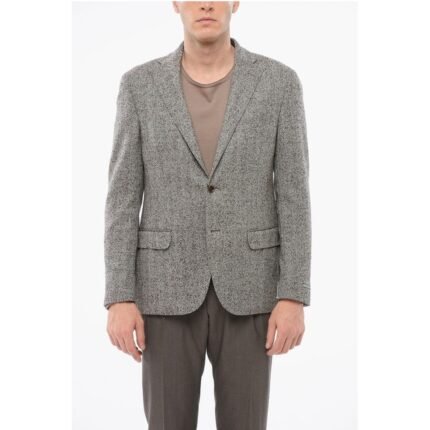 Nino Danieli Wool Blend Single Breasted Blazer Herringbone Motif WithFlap