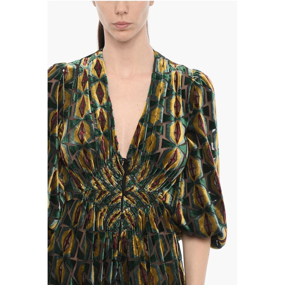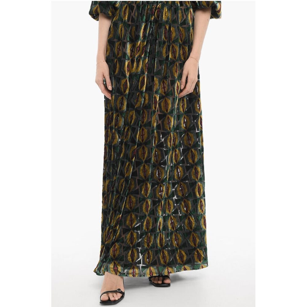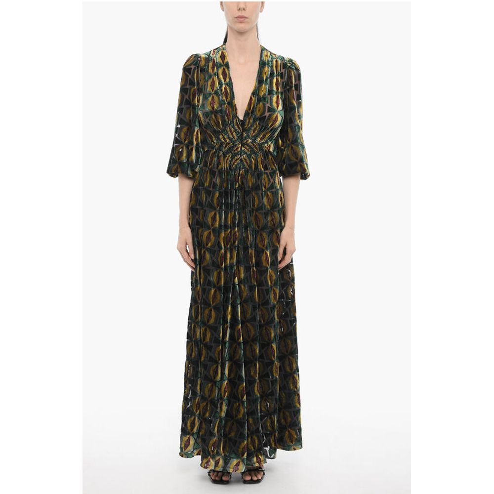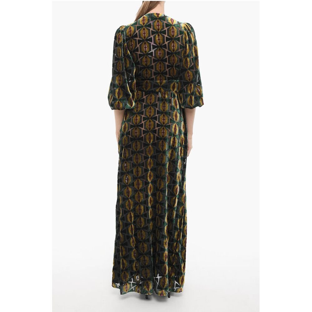 La Double J Velvet CAMERINO Maxi Dress with Front Buttoning