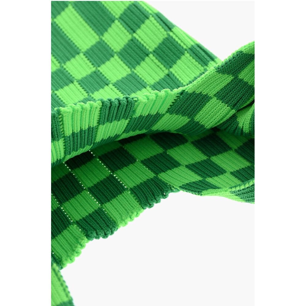 Last Frame Two-Tone Checked Knitted Tote Bag