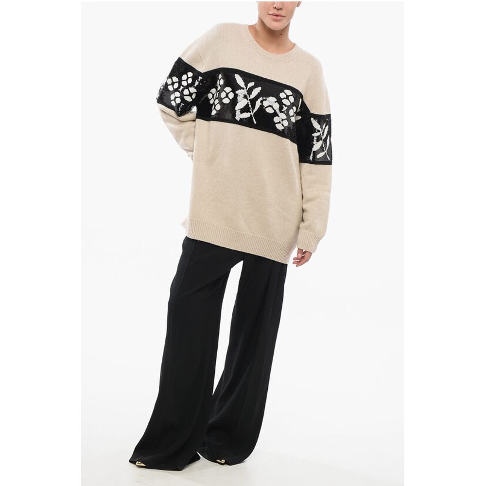 Max Mara Cashmere Blend FAGGI Crew Neck Pullover with Sequined Embroi