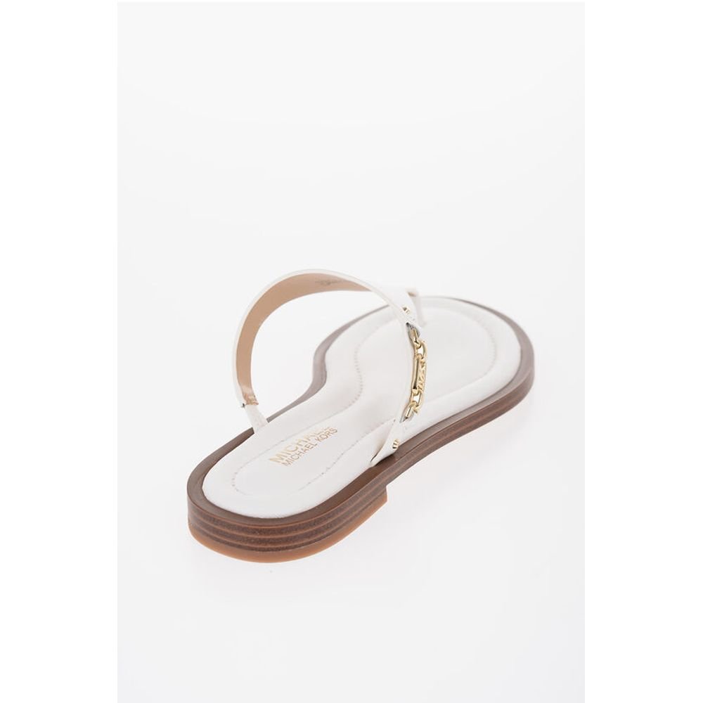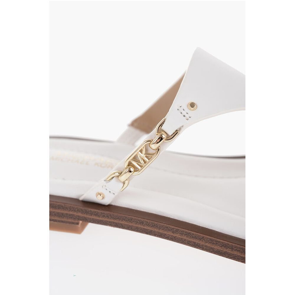 Michael Kors MICHAEL Leather DANIELLA Thong Sandals with Golden-Effect Mo