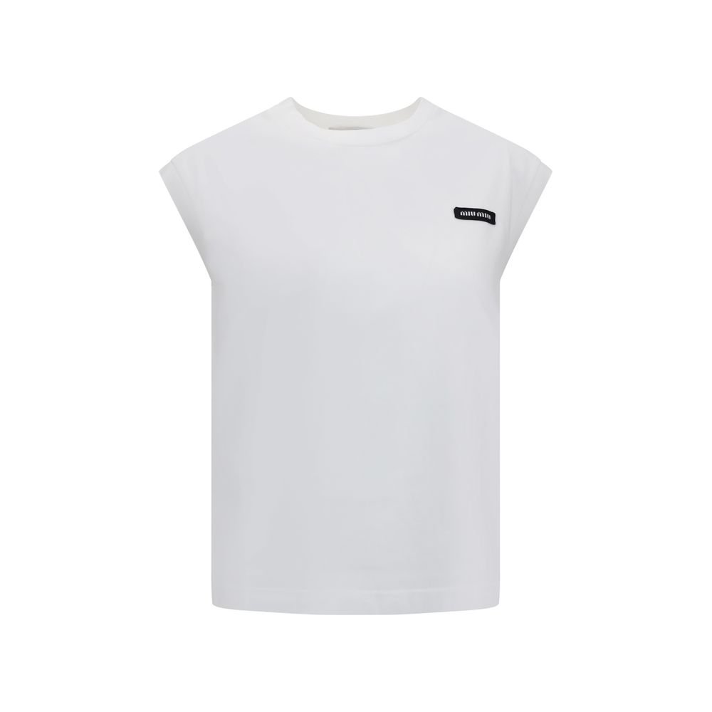 Miu Miu’s cotton T-shirt set includes three versatile and stylish designs. Each T-shirt is embellished with a contrasting logo applique on the chest. The set includes one long-sleeved, one short-sleeved, and one sleeveless version, all with a crew neck and ribbed cuffs for a comfortable fit and a touch of casual elegance.
