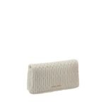 Miu Miu’s lambskin Shoulder Bag embodies elegance and sophistication. Made of matelassé fabric, it stands out for its iconic texture. The hook-and-eye closure adds a sophisticated touch, while the removable jeweled shoulder strap lends a precious allure. The removable handle offers versatility, adapting to different occasions. Completing the design is the interior slit pocket, ideal for practical and essential organization.