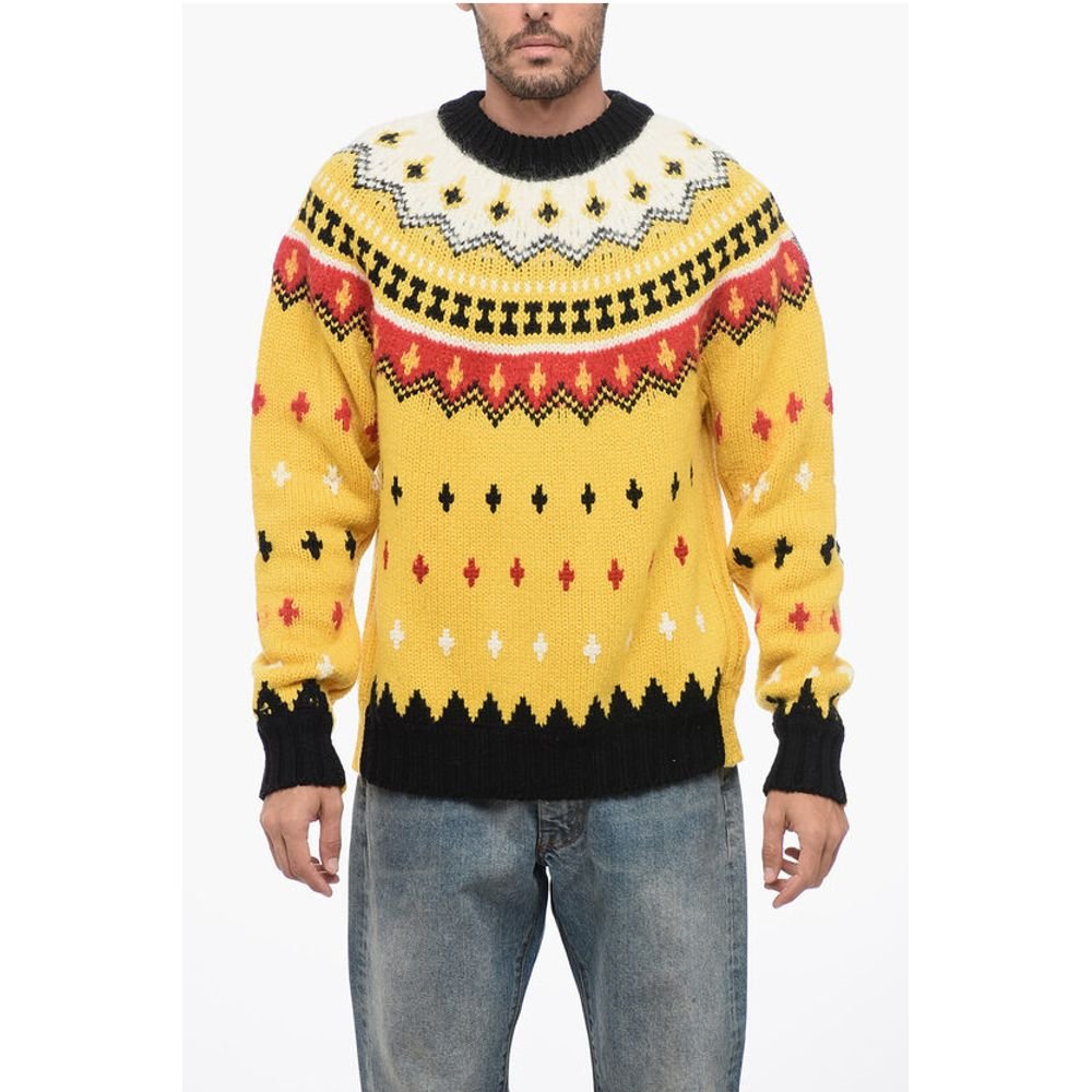 Moncler GRENOBLE Crew Neck Wool Blend Pullover with Fairisle Motif
