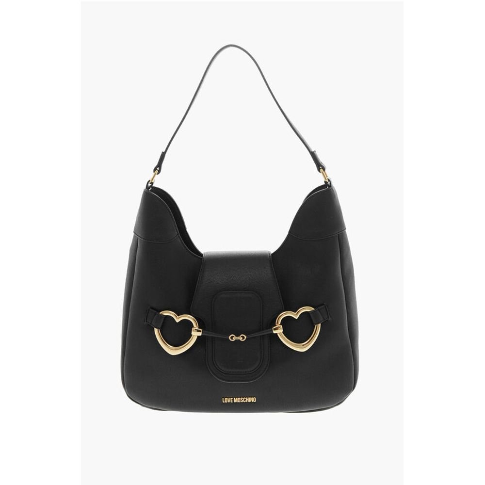 Moschino LOVE Textured Faux Leather Hobo Bag with Maxi Heart-Shaped C