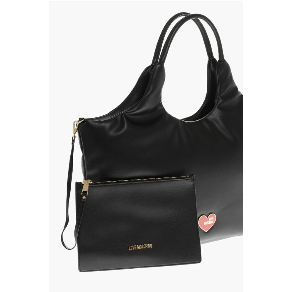 Moschino LOVE Faux Leather Shoulder Bag with Maxi Golden Logo