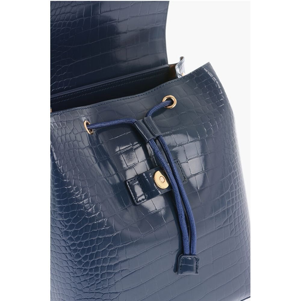 Moschino LOVE Crocodile Effect Faux Leather Bucket Bag with Maxi Logo