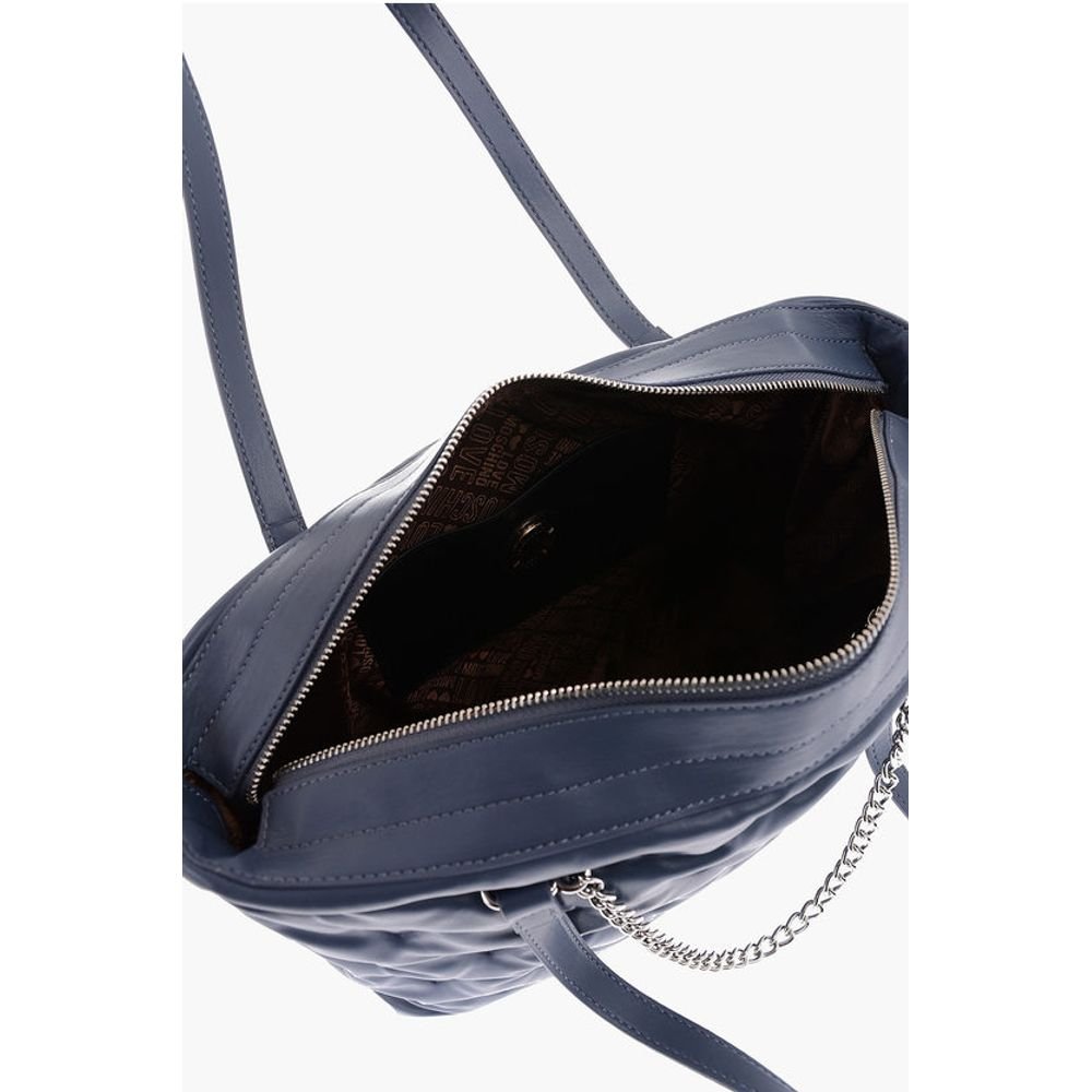 Moschino LOVE Double Pocket Faux Leather Tote Bag With Clamp