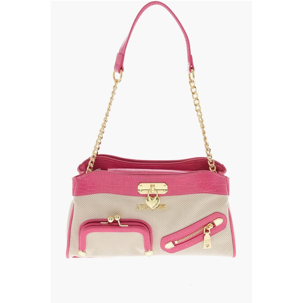 Moschino LOVE Fabric Crossbody Bag with Crocodile Effect Faux Leather