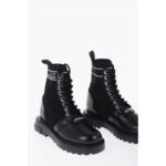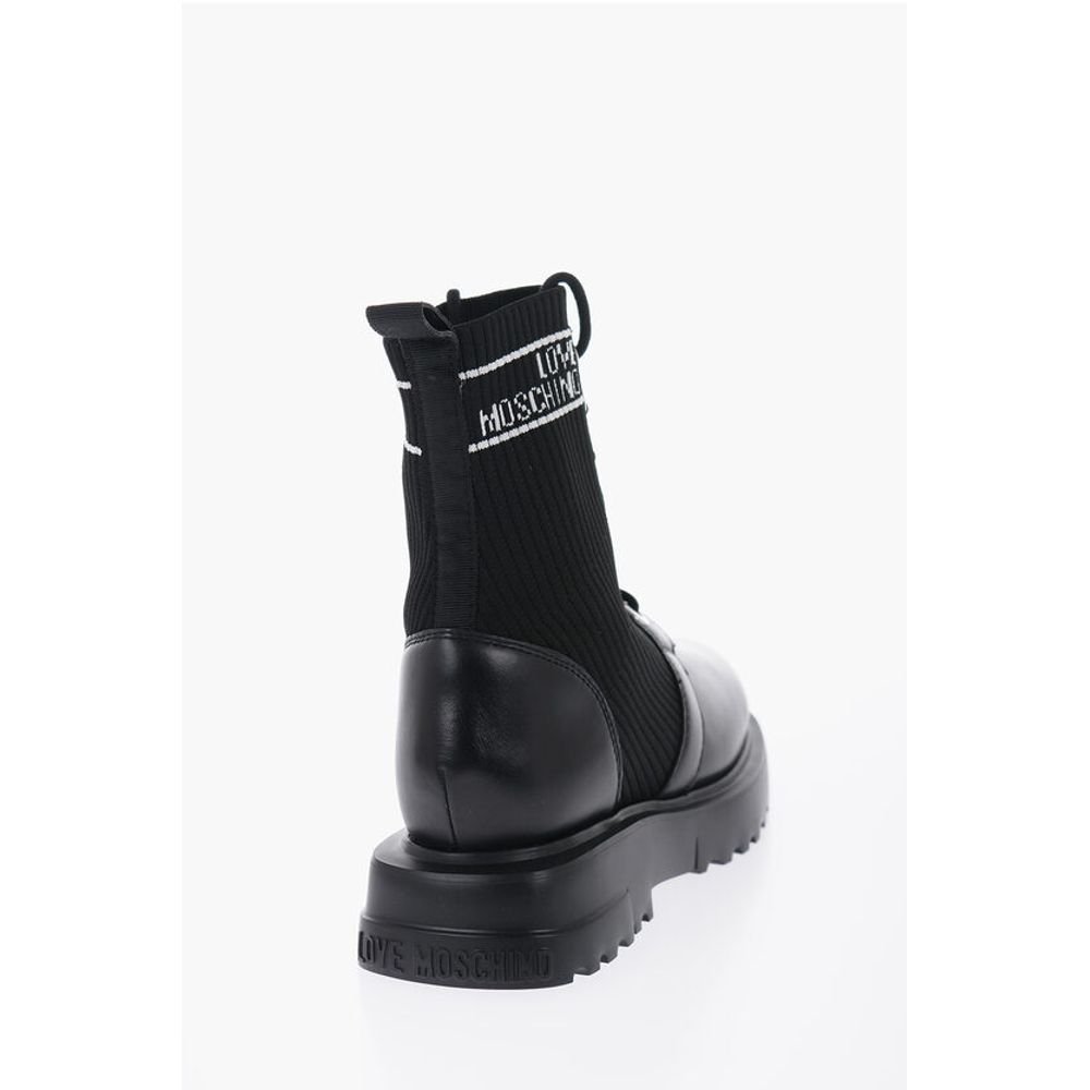 Moschino LOVE Leather and Fabric Combat Boots with Contrasting Detail