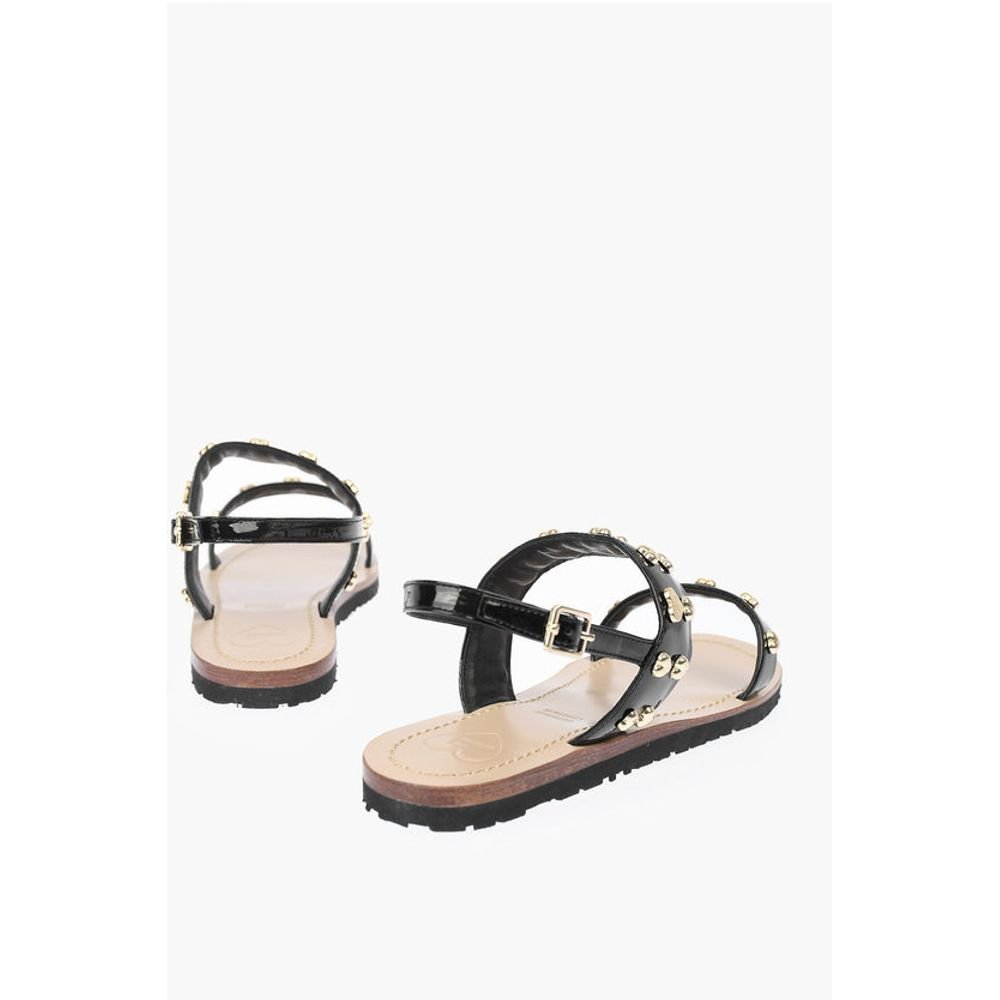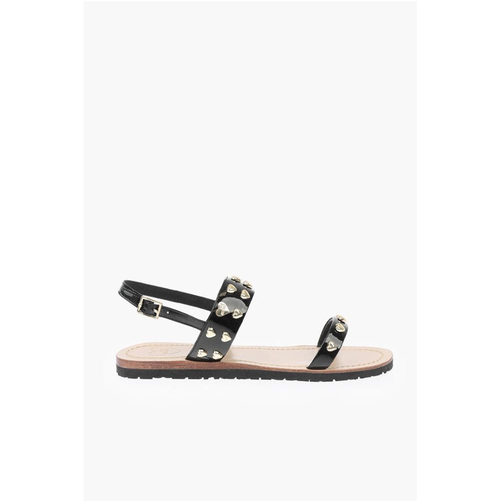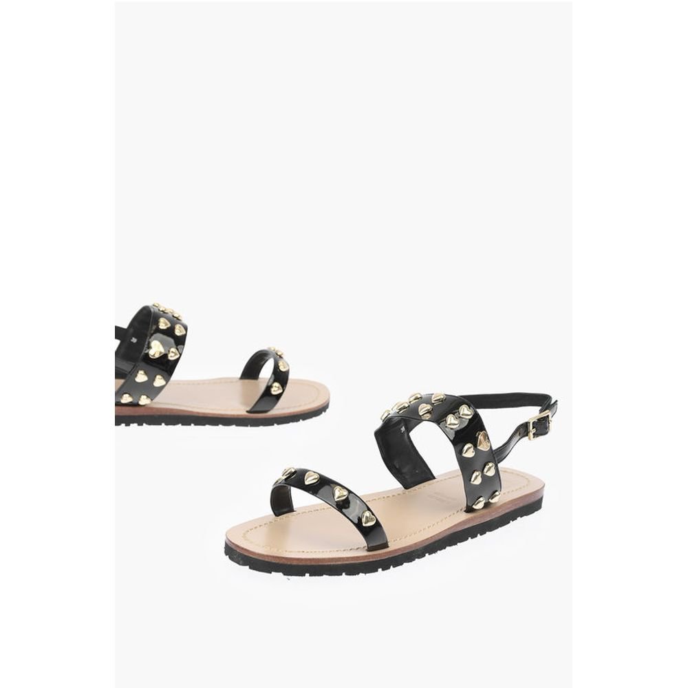 Moschino LOVE Patent Leather Flat Sandals with Heart Studs