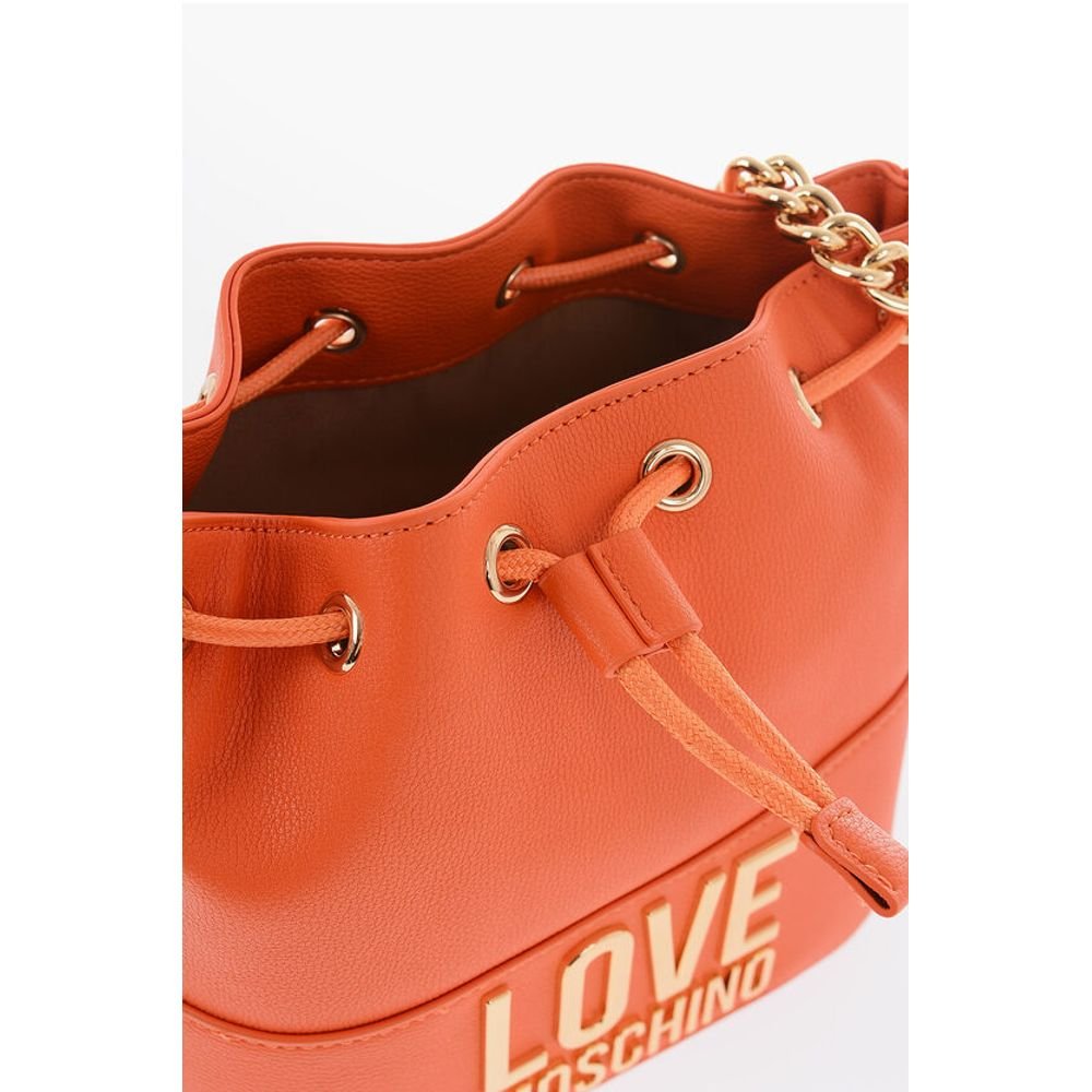 Moschino LOVE Textured Faux Leather Bucket Bag with Chain Shoulder St