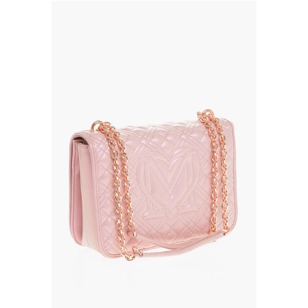 Moschino LOVE Quilted Faux Leather Shoulder Bag with Golden Details