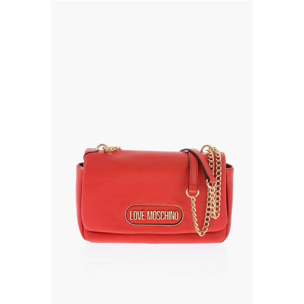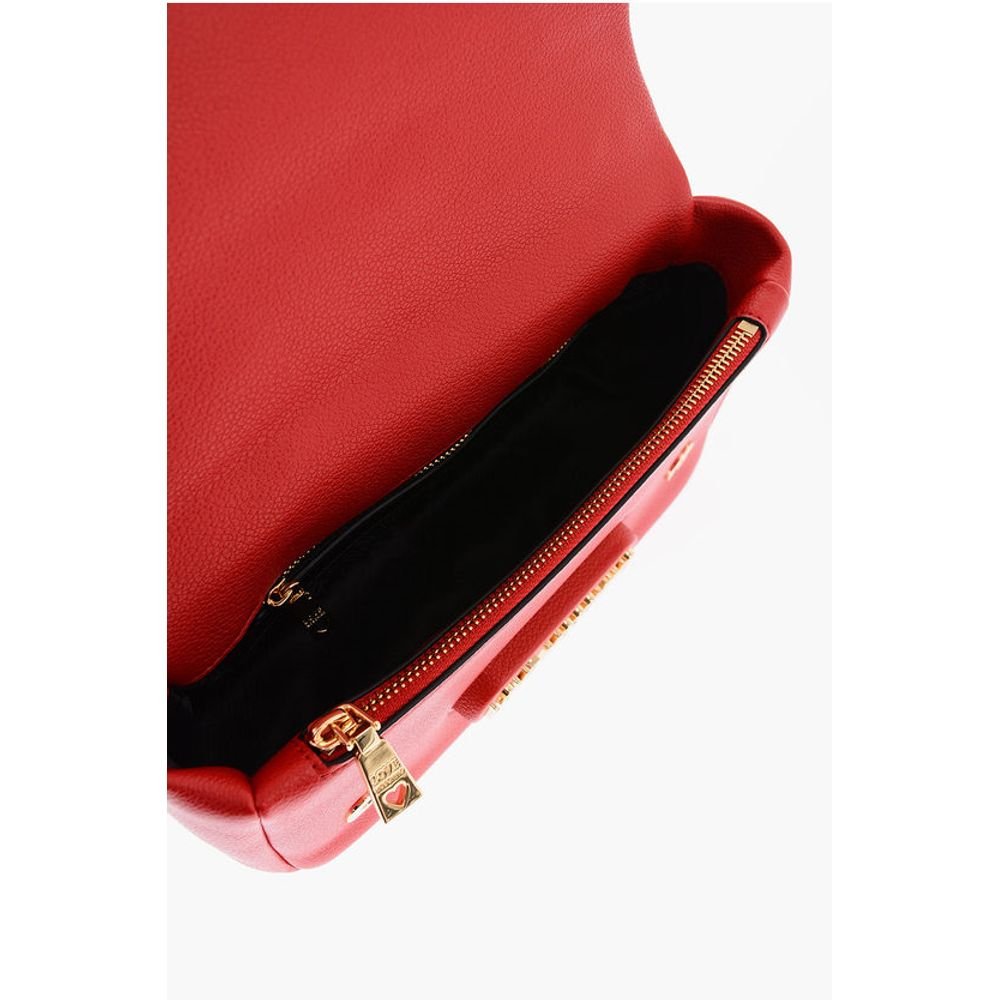 Moschino LOVE Textured Faux Leather Shoulder Bag with Golden Logo