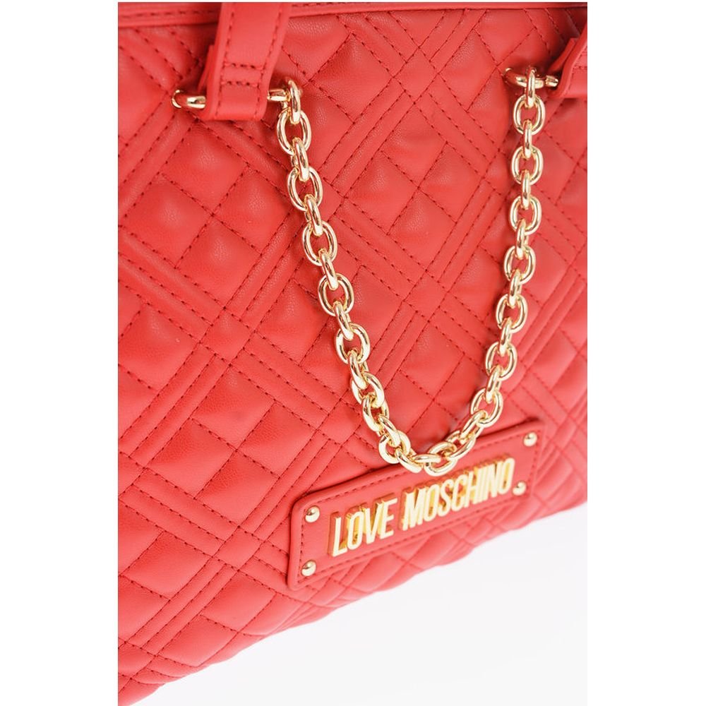 Moschino LOVE Faux Leather Quilted Tote Bag with Golden Details