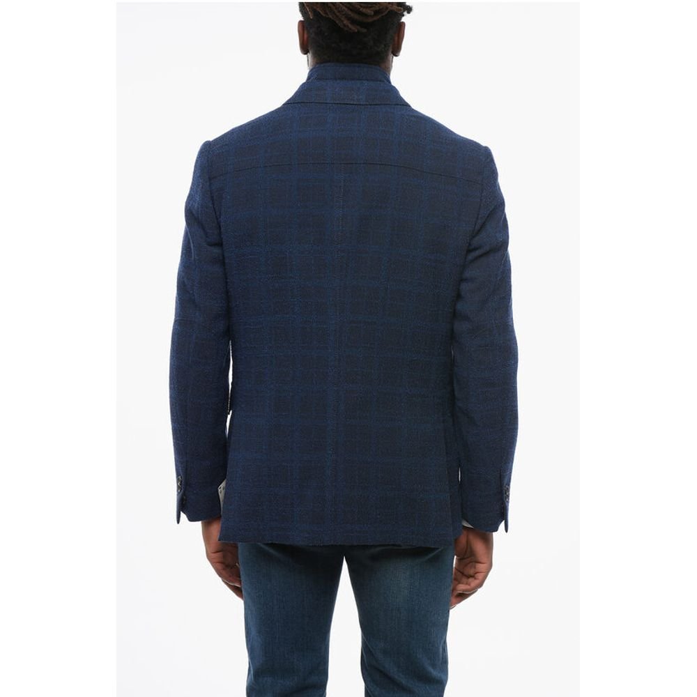 Nino Danieli Single-breasted Checkered Linen Blend Blazer