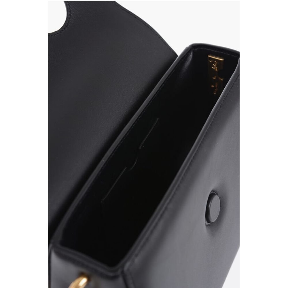 Off-White Leather Crossbody Bag with Cut-Out Details and Golden Chain