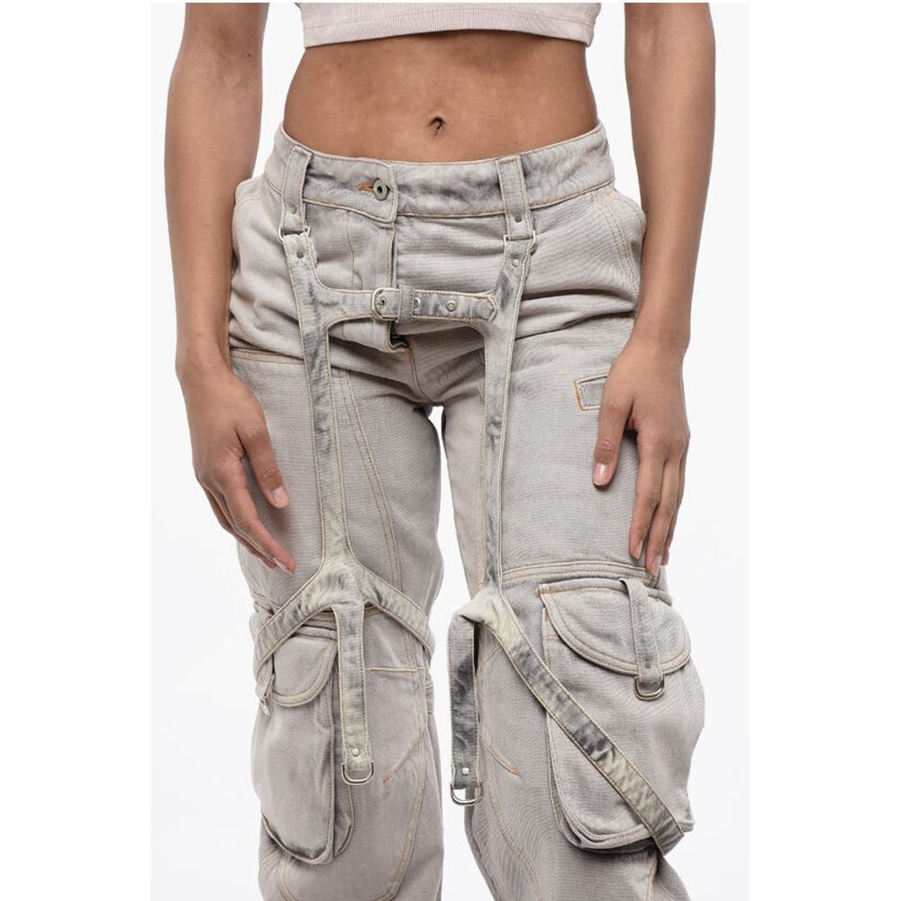 Off-White Bleached Effect Baggy Fit Cargo Pants with Harness-Style Det