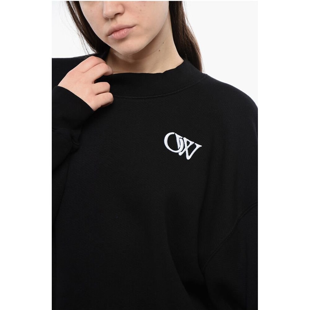 Off-White Cotton Crew-Neck Sweatshirt with Maxi Embroidery Back