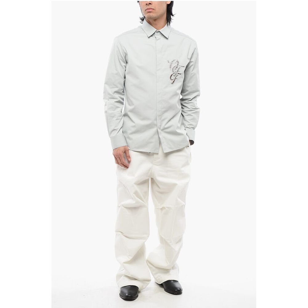 Off-White Cotton NATLOVER Shirt with Openwork Embroidery