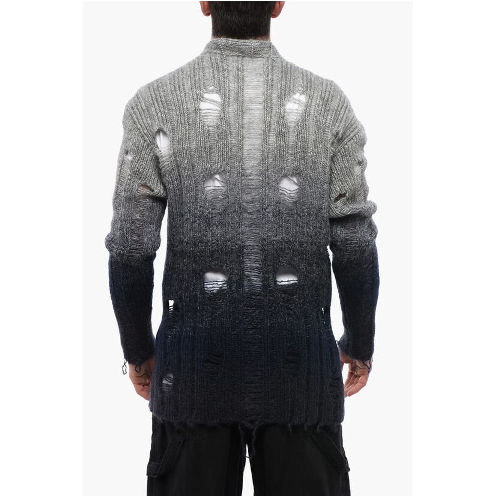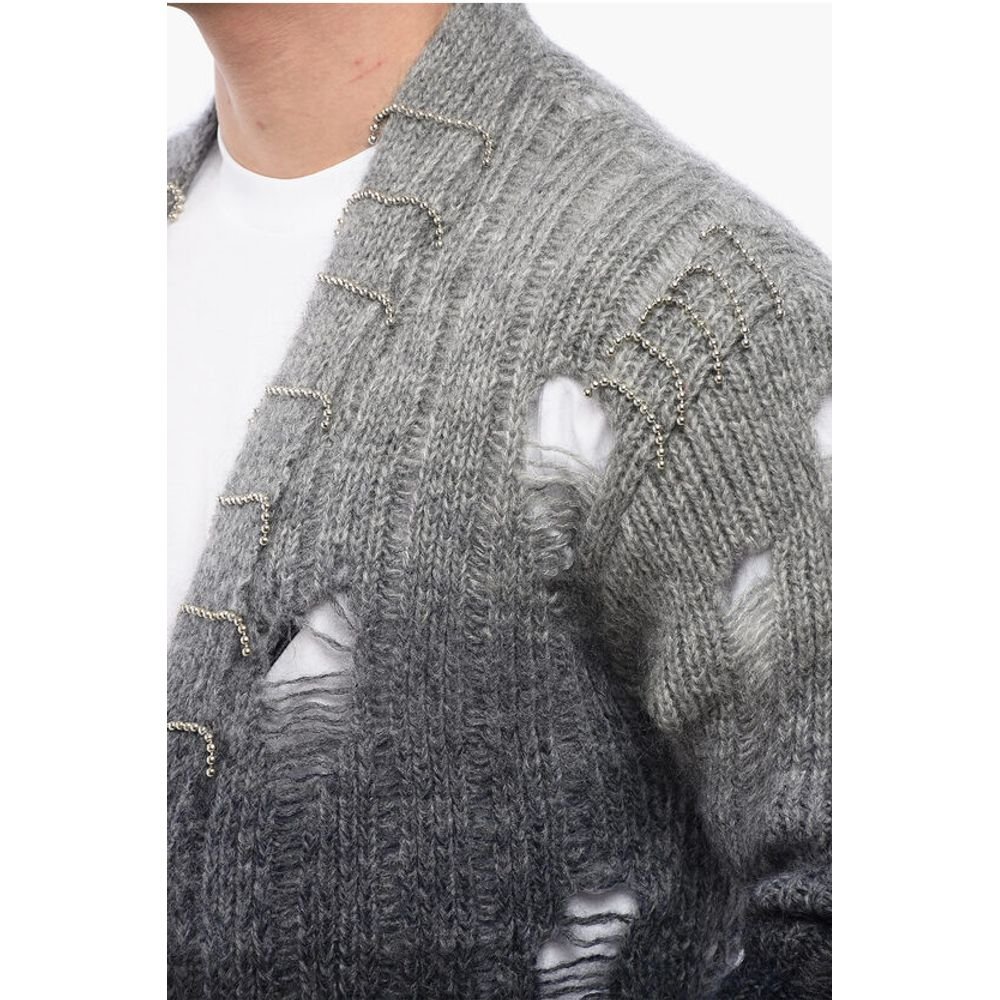 Off-White Distressed Effect Wool Cardigan With Beads Detail